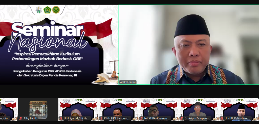 Bandung – Asosiasi Dosen Perbandingan Madzhab dan Hukum (ADPMH) secara resmi dikukuhkan oleh Sekretaris Jendral Dirjen Pendis Kemenag RI, Prof. Arskal, pada Sabtu, 21 Juni 2025, melalui platform Zoom Meeting. Ketua Prodi Perbandingan Madzhab dan Hukum, UIN Sunan Gunung Djati Bandung, Bapak Yayan Khaerul Anwar diberikan kepercayaan sebagai Sekertaris Umum Asosiasi. Acara pengukuhan ini dirangkaikan dengan Seminar Nasional Pemutakhiran Kurikulum Perbandingan Madzhab dan Hukum, menandai langkah strategis ADPMH dalam menghadapi dinamika keilmuan dan tantangan zaman.